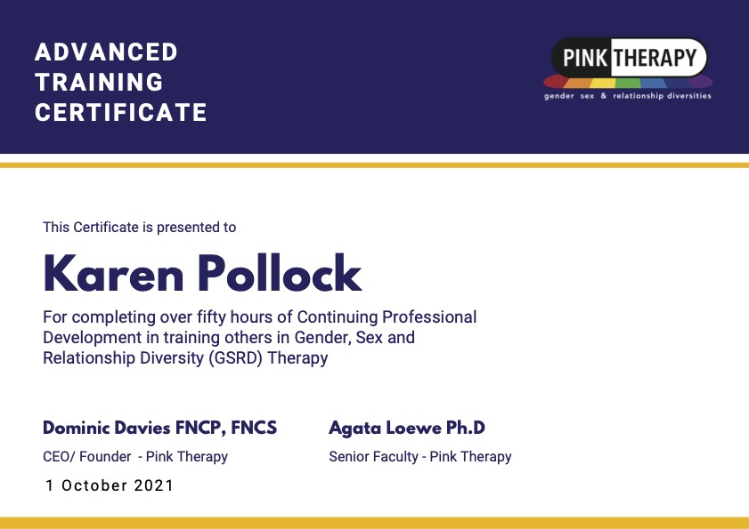 Which is a rather poetic way of saying that I realised whilst I was an experienced teacher, and trainer, I wanted to live by my own values and beliefs, and ensure I had expertise in training therapists in working with gender, sexuality and relationship diversity.
